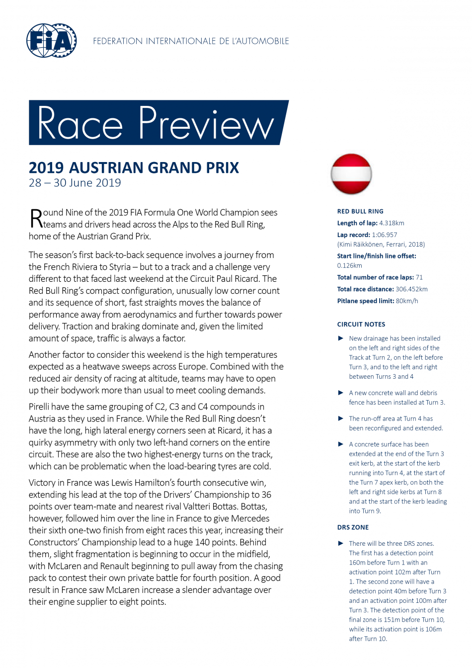 F1 - 2019 Austrian GP previewSport news 2019 Austrian Grand Prix Preview FIA Formula One World Championship Austrian Grand Prix F1 SEASON...